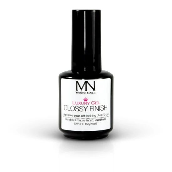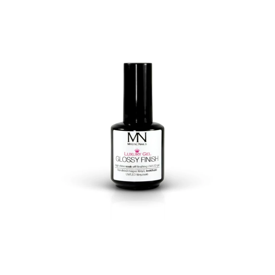 - A mattított vagy ragacsos rétegre vigyél fel egyenletes rétegben Luxury Glossy Finish Gel-t.